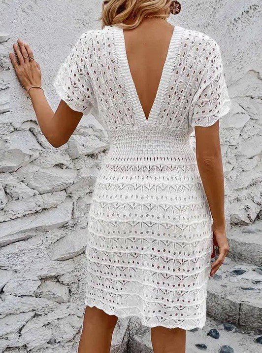 Deep V Eyelet Cover Up Dress β Beach Luxe