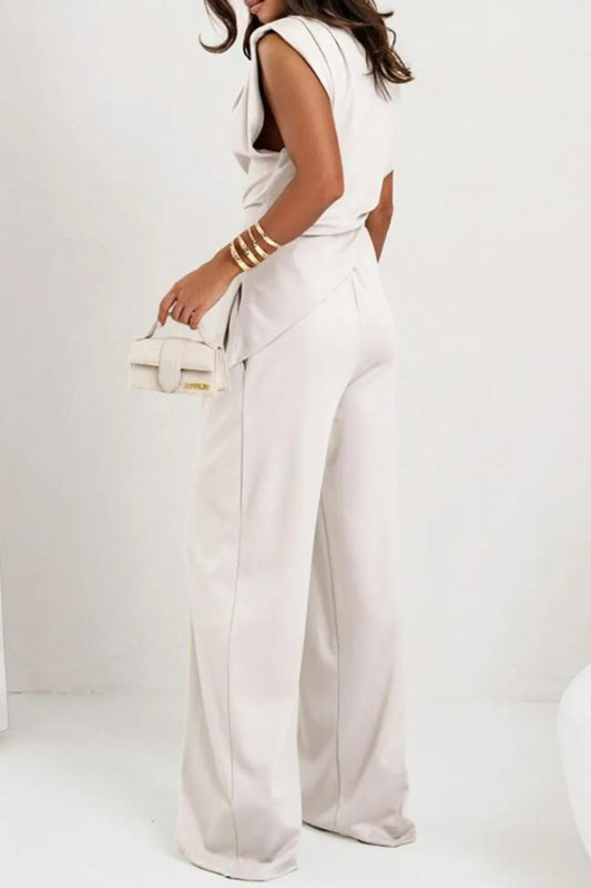 Luxe Asymmetrical Ruched Set - Elevated Wide-Leg Ensemble