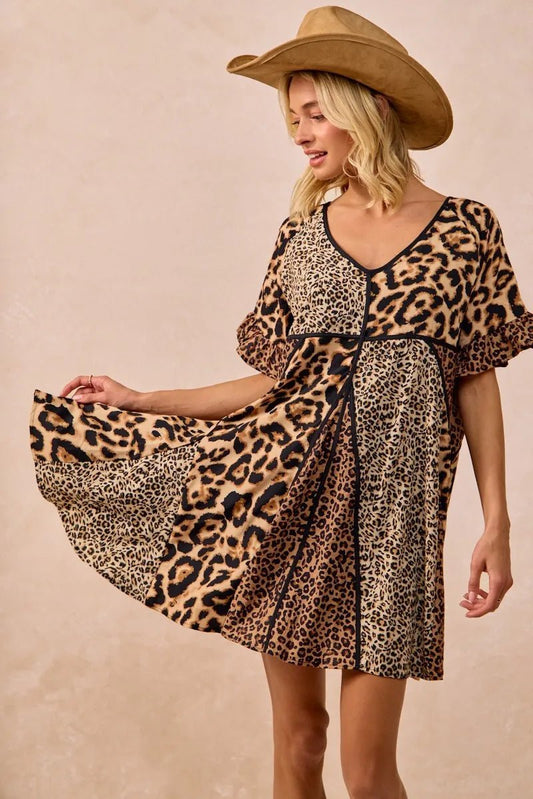 BiBi Leopard Prints Mix and Match Short Sleeves Dress