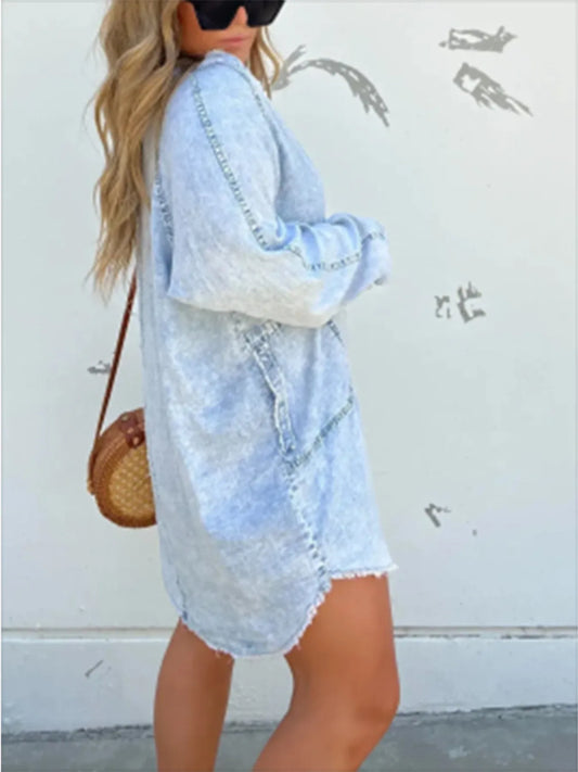 Full Size Button-Front Long Sleeve Denim Shirt Dress Plus Size