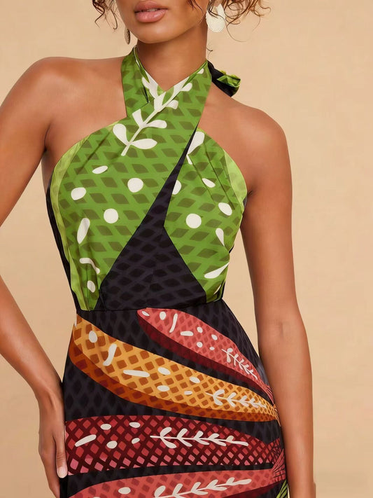 Tropical Print Halter Neck Midi Dress – Women's Boutique Vacation Style