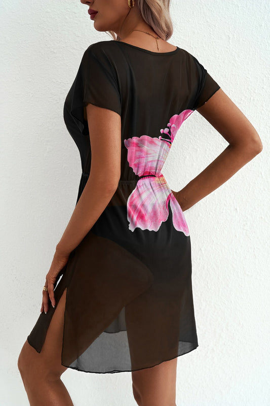 Floral Print V-Neck Semi Sheer Beach Cover-Up Dress – Women's Boutique Resort Style